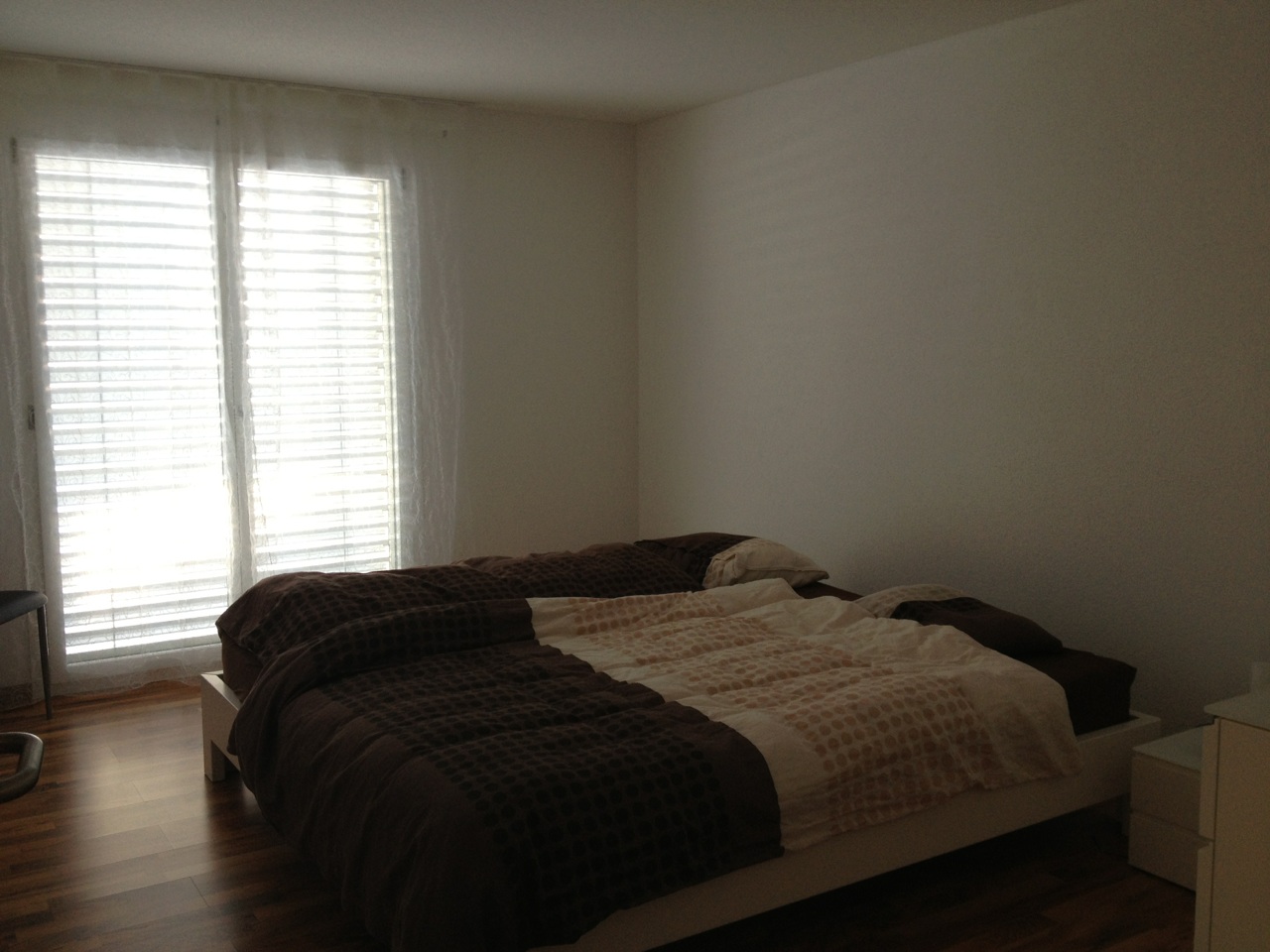 die Schlafzimmer sind mit Laminat belegt. |